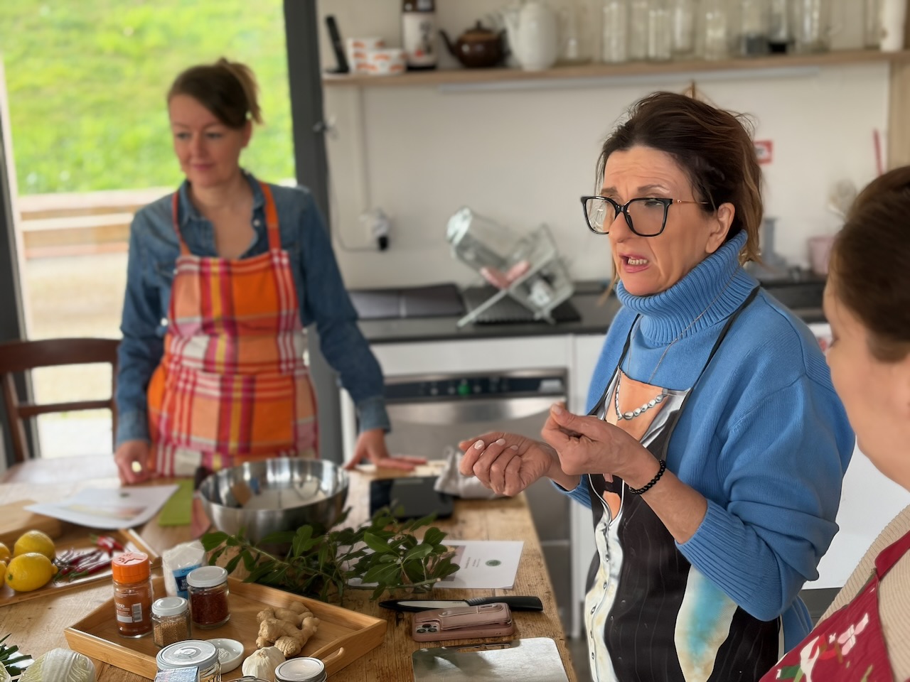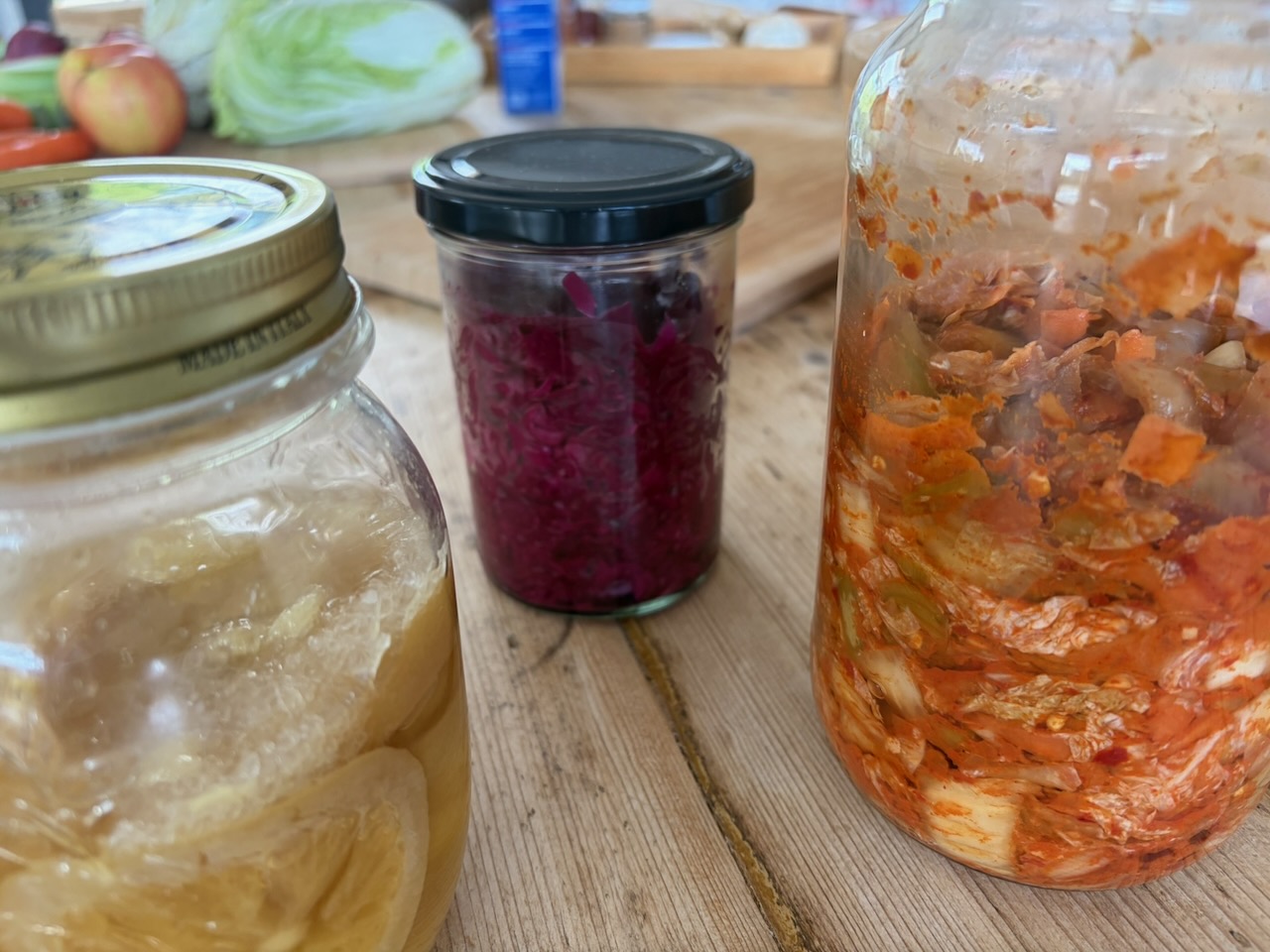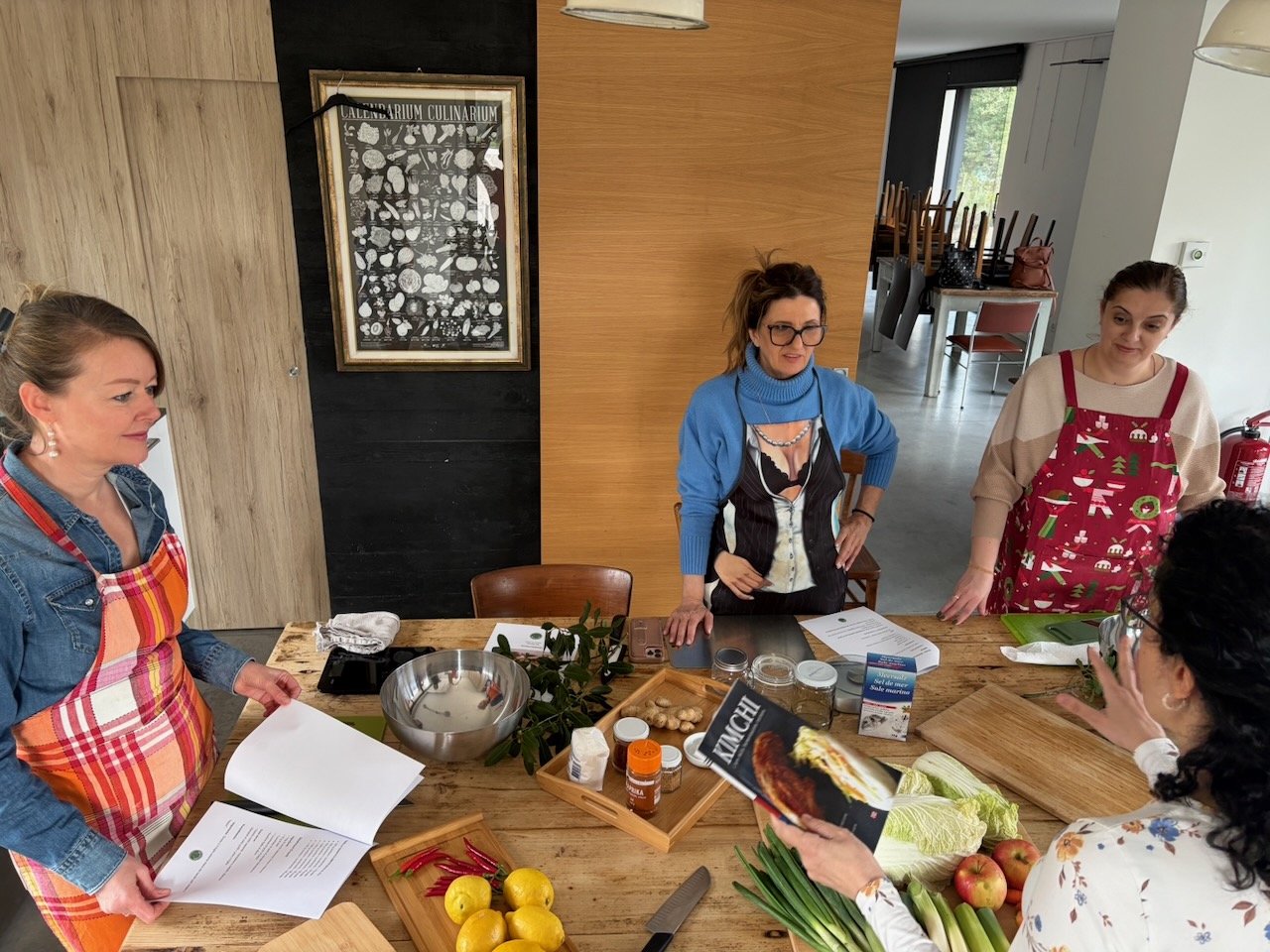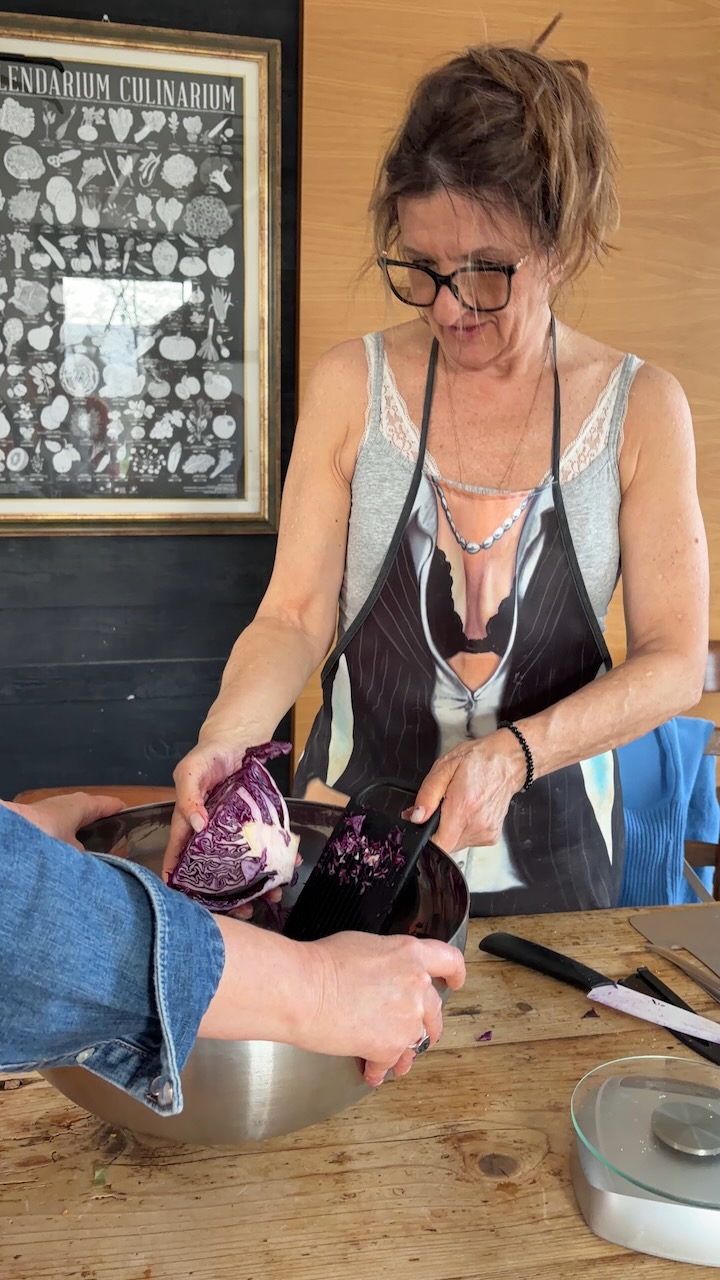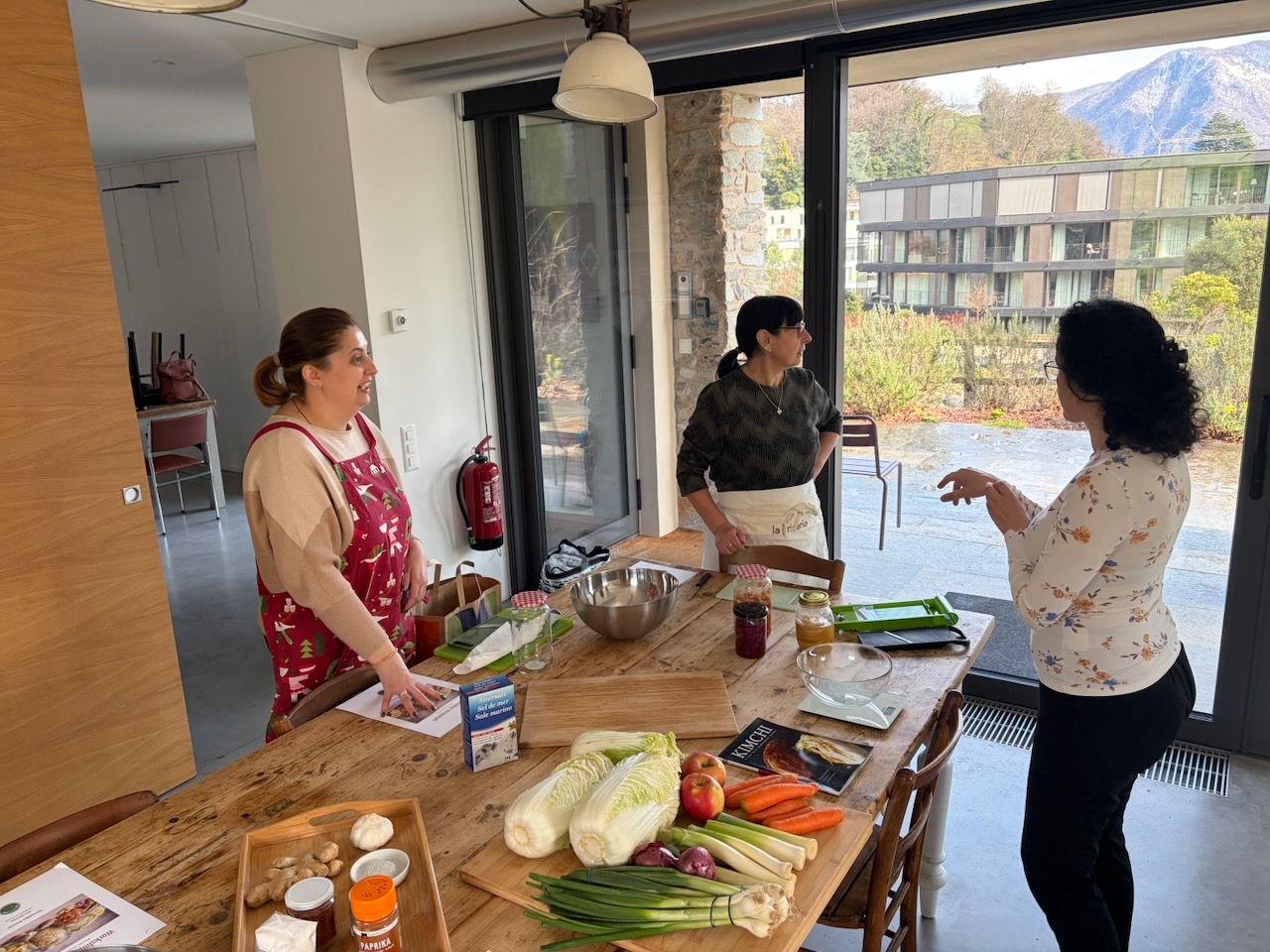Questo secondo appuntamento è stato come ritrovare un’atmosfera familiare, ma con un’energia nuova, vibrante come i colori dei nostri fermentati. Se il primo incontro sapeva di “arrivederci”, questo ha confermato che la strada intrapresa è quella giusta: un percorso fatto di curiosità sincera e della voglia di riscoprire gesti antichi in chiave moderna. Questa volta il cuore dell’evento è stato un viaggio tra profumi intensi e consistenze croccanti. Vedere il gruppo di amiche immergersi con così tanto entusiasmo nella preparazione del Kimchi, dei crauti rossi e dei limoni fermentati mi ha riempito di gioia.