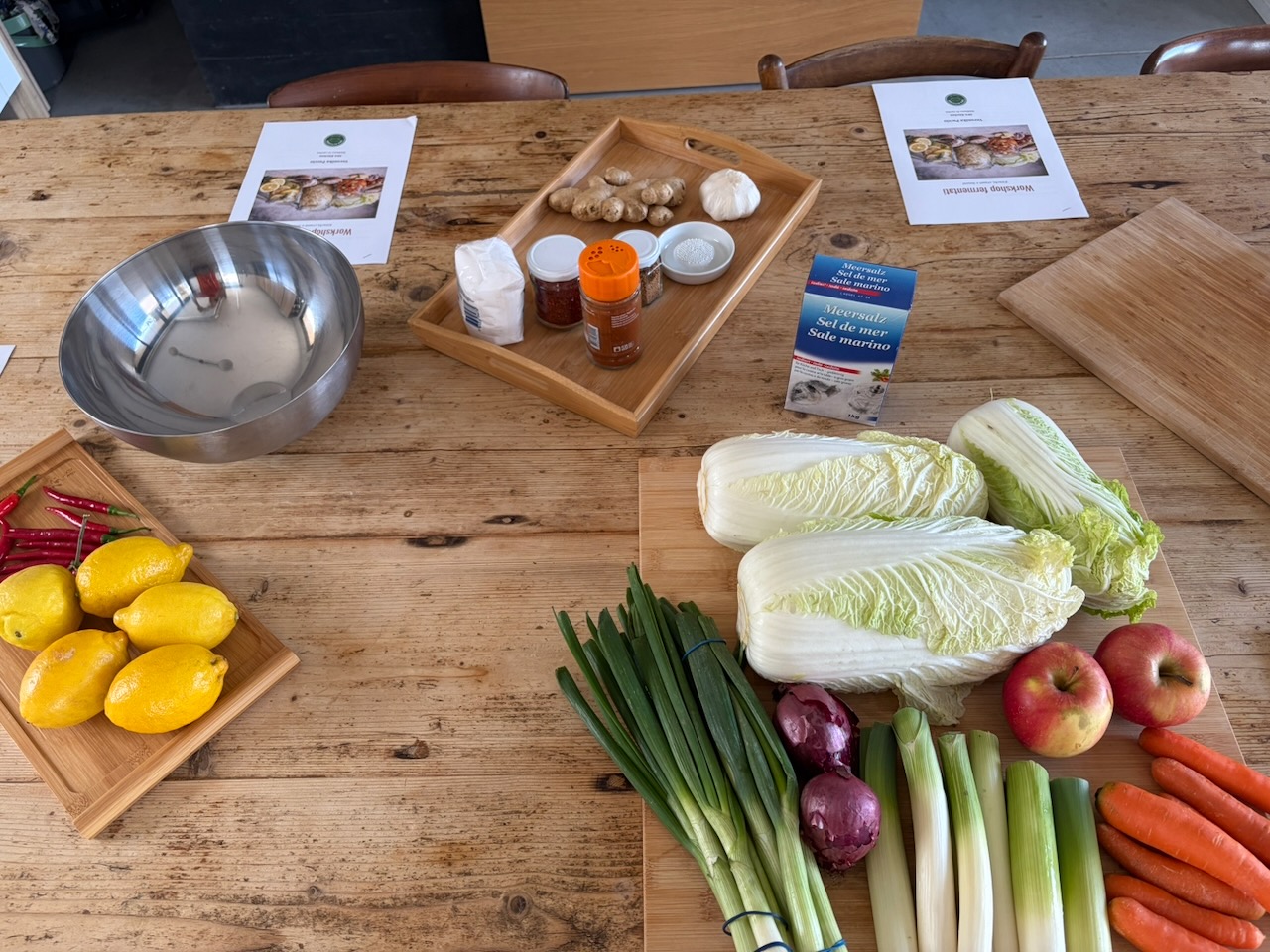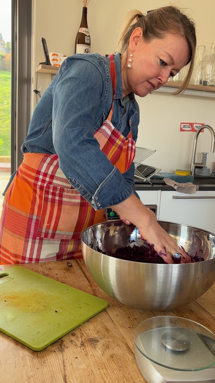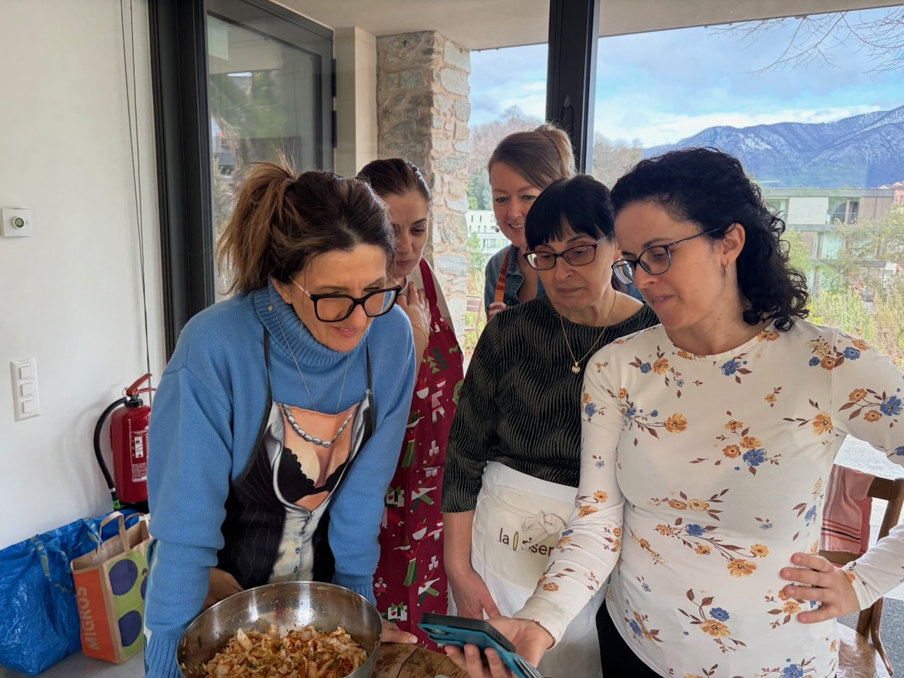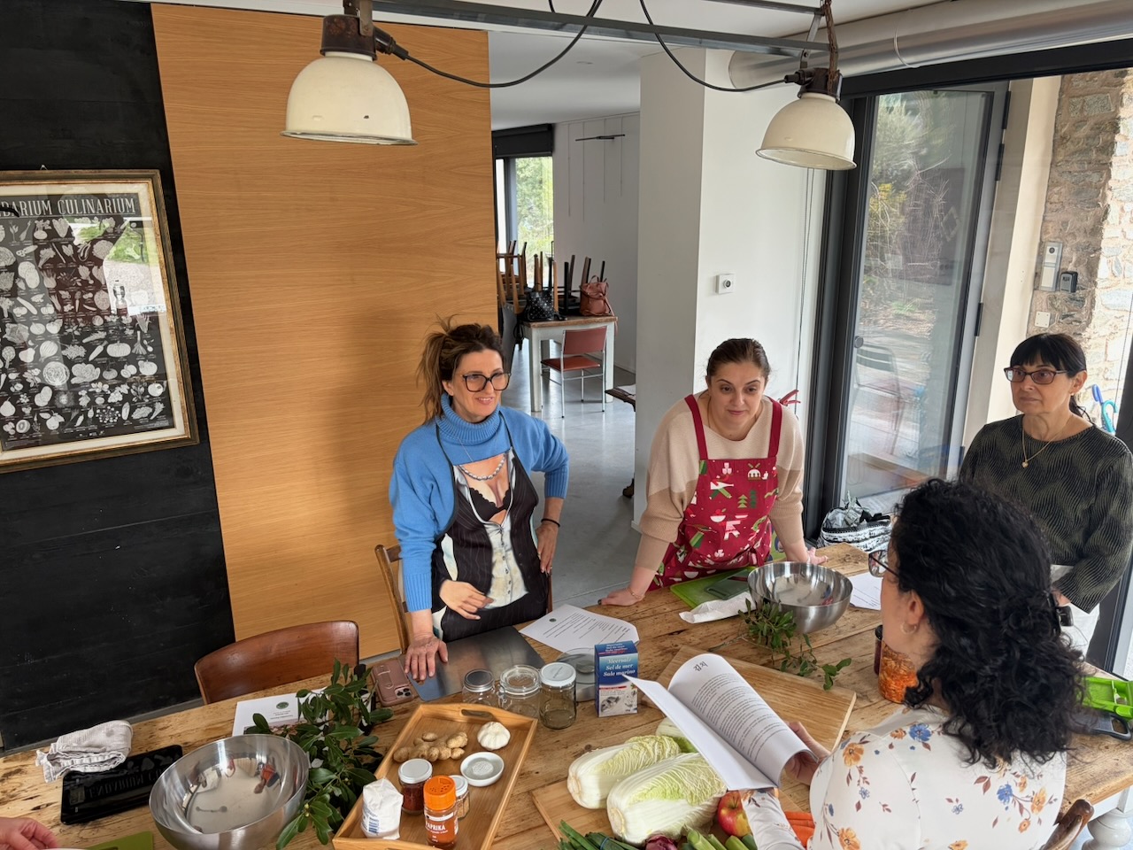 Ho voluto creare un pomeriggio dedicato all’arte della conservazione naturale, un viaggio tra sapori decisi e gesti antichi. Insieme a un gruppo di amiche, abbiamo esplorato il mondo dei fermentati dando risalto a tre ricette speciali: il Kimchi, i crauti e i limoni. La vera star della giornata è stata senza dubbio il Kimchi, che ha acceso la curiosità di tutte per la sua complessità e il suo carattere vibrante. Abbiamo alternato momenti di teoria e consigli alla preparazione pura, sporcandoci le mani e imparando a rispettare i tempi della natura. A fare da cornice a questo splendido pomeriggio di gusto orientale ci siamo regalate un assaggio finale: un hummus di ceci con limoni fermentati, da gustare insieme alla mia black focaccia con kimchi e crauti (entrambi preparati in precedenza), il tutto accompagnato da un buon bicchiere di prosecco per brindare alla bellezza dello stare insieme.