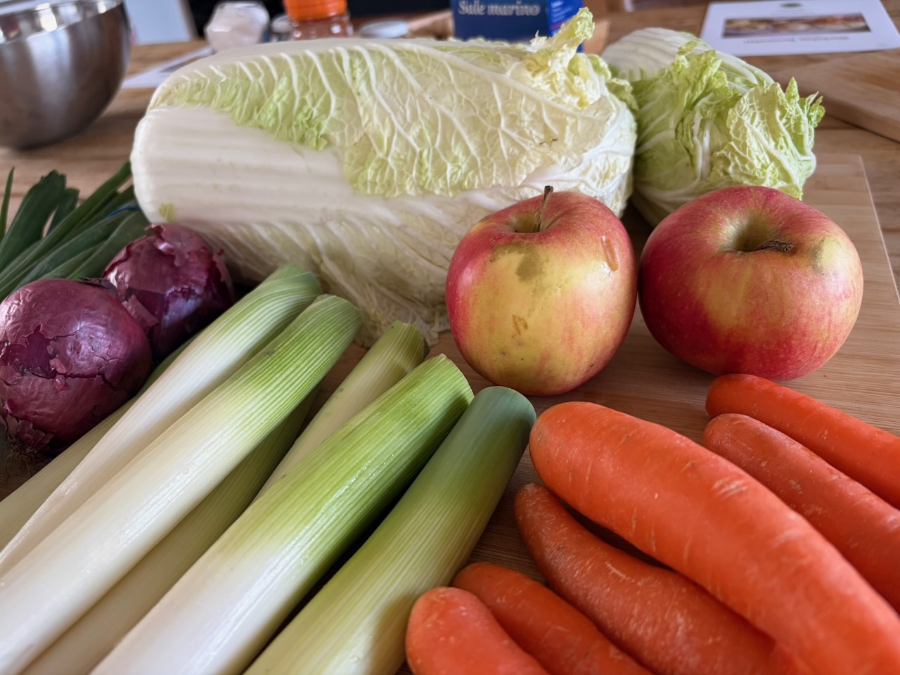 Il protagonista assoluto della giornata, capace di catturare l’attenzione di tutte con la sua energia vibrante. Preparare il Kimchi significa prima di tutto entrare in contatto con un’esplosione di profumi contrastanti: c’è la base dolce e croccante del cavolo cinese che incontra il calore deciso del peperoncino, le carote e la freschezza pungente dei cipollotti appena tagliati.