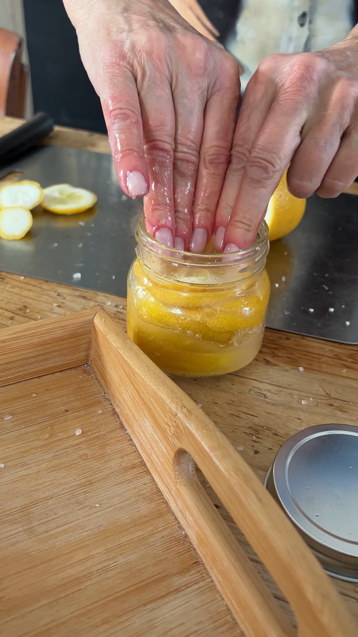 Un tocco di luce e profumo mediterraneo che racchiude il sole in un barattolo. Sebbene i limoni siano un simbolo della nostra terra, questa specifica ricetta affonda le sue radici nella tradizione del Marocco, dove la fermentazione sotto sale è un’arte antica. È un processo quasi magico che ne trasforma completamente la consistenza e il sapore, rendendo la buccia morbida, setosa e incredibilmente aromatica. Durante il workshop abbiamo preparato i barattoli con estrema cura, onorando questa tecnica magrebina e sperimentando diversi tagli per renderli versatili in ogni cucina.