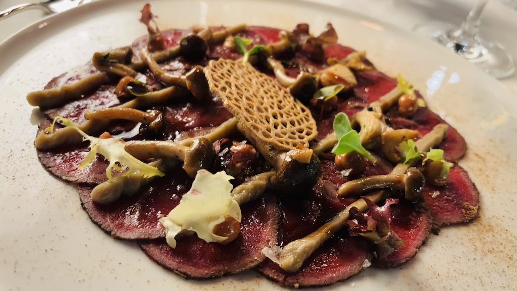 La proposta culinaria del Ristorante Castelgrande ci ha colpito per la sua straordinaria doppia anima, capace di accontentare ogni desiderio e curiosità gastronomica. Da una parte troviamo l’eccellenza stellata del ristorante, celebrata da guide prestigiose come Gault Millau e Falstaff, dove la tecnica dello Chef si esprime in percorsi degustazione creativi, tecnici e visivamente spettacolari. È una cucina che parla di precisione e passione, capace di trasformare le materie prime locali in un viaggio sensoriale che rimane impresso ben oltre il momento dell’assaggio.